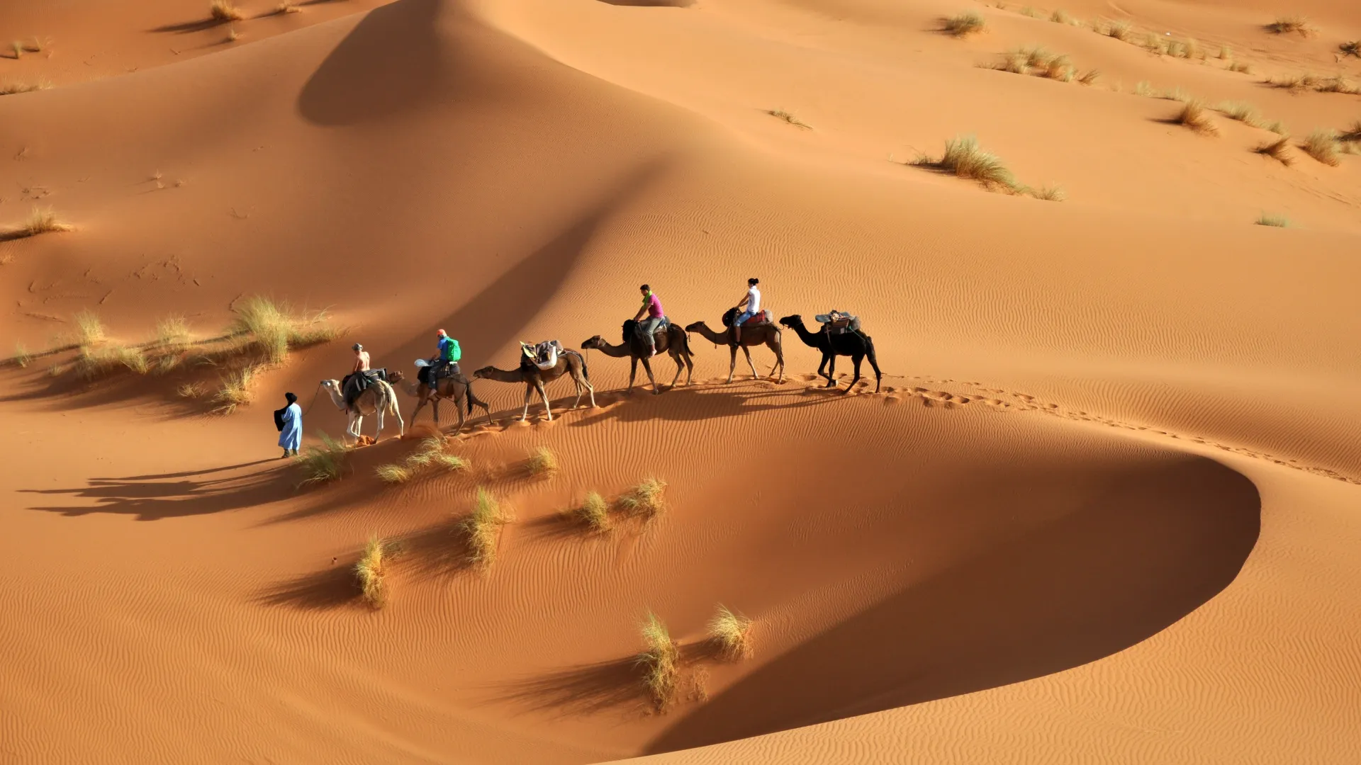 Du vil opleve smukke ørkenlandskaber med enorme sanddyner, hygge ved lejrbålet med nomaderne og en nattehimmel fyldt med stjerner– en meget fascinerende oplevelse. Overnatningerne foregår i beduintelt, og selvfølgelig skal du også ride på dromedar i solnedgangen og ud i det uendelige mellem sandklitterne.